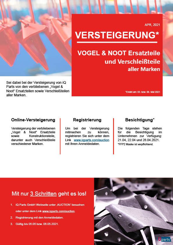 *The auction is closing on May 5th respectively 6th, 2021. In case of questions please contact us at office@iqparts.com.
